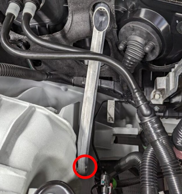 - 拆卸将铅笔形撑杆固定到底盘的螺栓(扭矩为 10 Nm)。