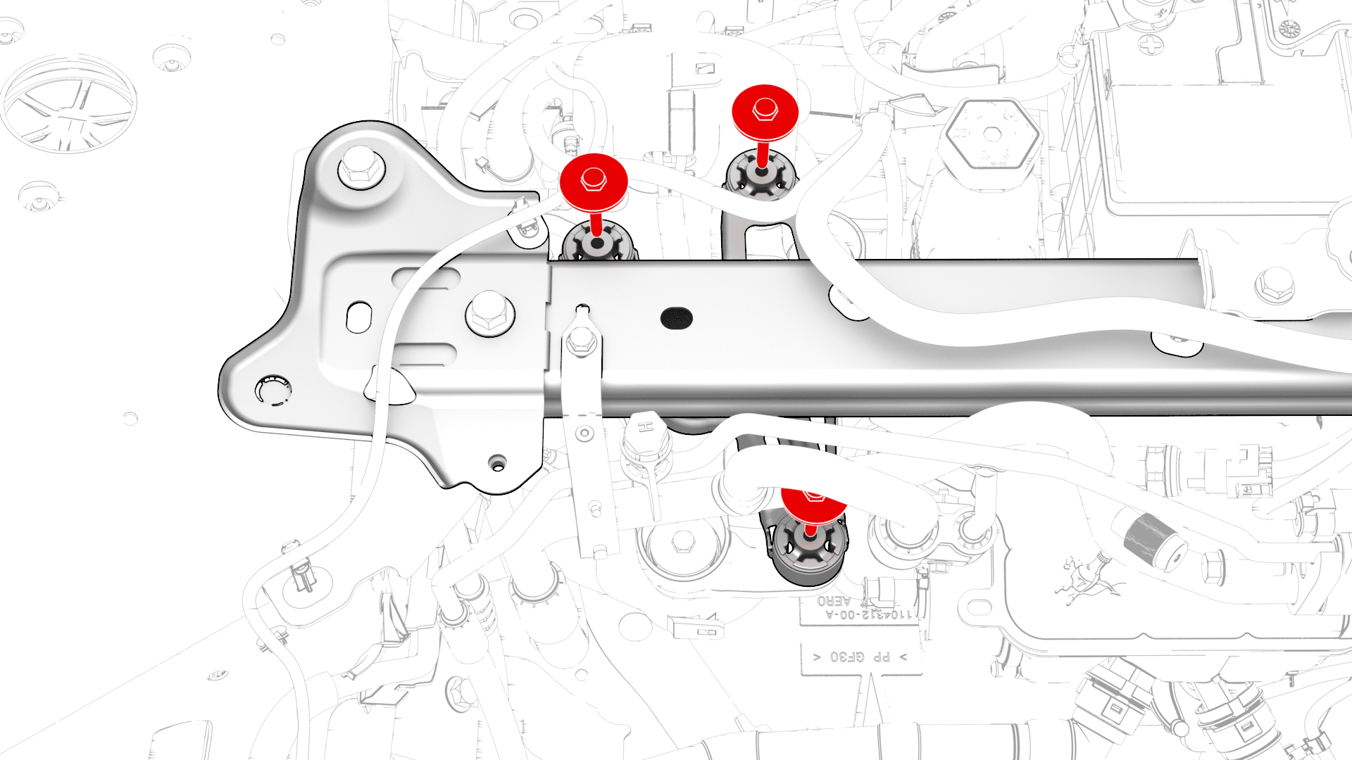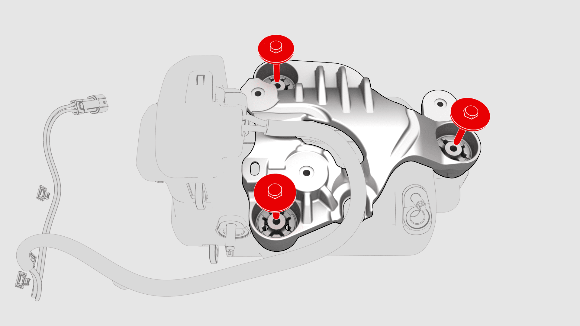 10 Nm (7.4 lbs-ft) - 移动减震塔支架后面的压缩机高压电气线束。