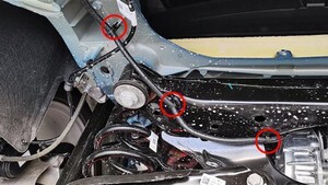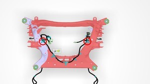 - 将后副框架线束安装到位,然后安装将副框架线束固定到副车架左右两侧的夹子 (X2)。