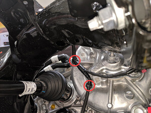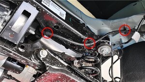 - 松开将副框架线束固定到后副框架左右两侧的夹子 (x2)。