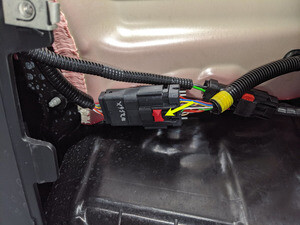 - 安装将 LH 侧 12V 副框架线束固定到车身和副框架的夹子 (x3)。