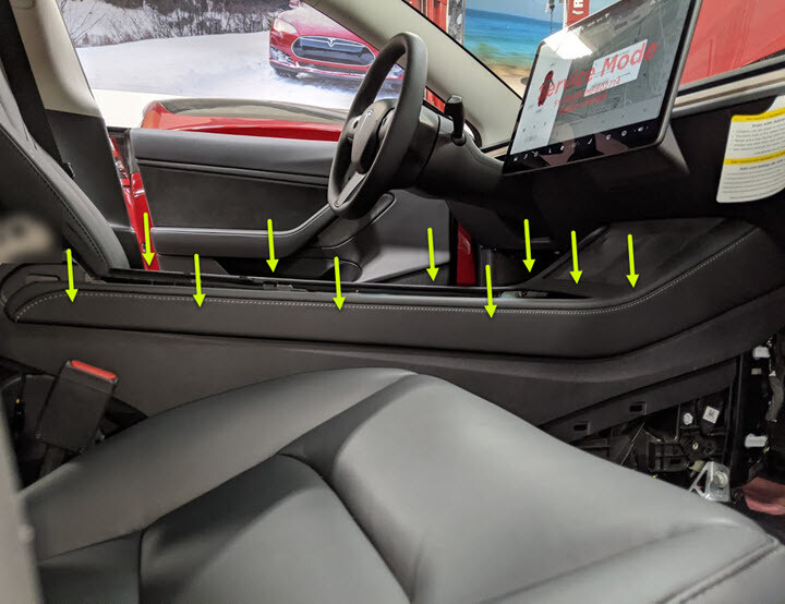 - 松开将亮条固定到中控台的定位锁片 (x12),然后从车上拆下亮条。