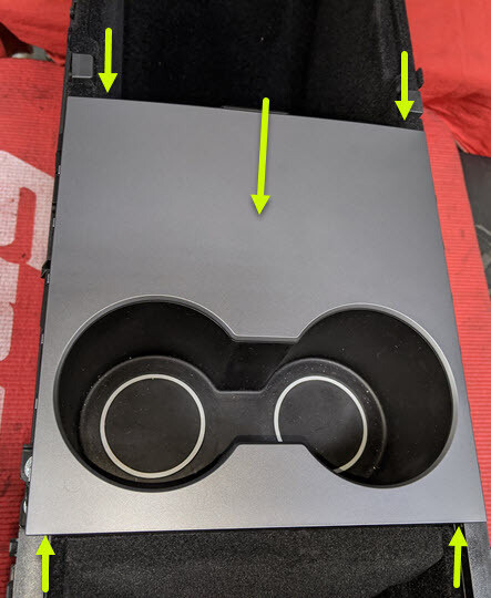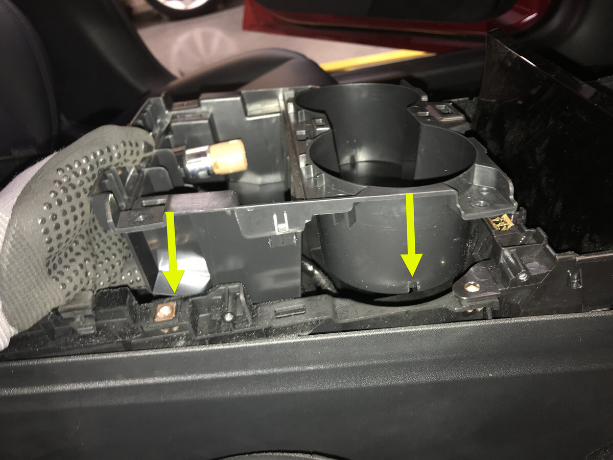 松开将杯托固定到中控台的夹子 (x2),然后从车上拆下杯托。