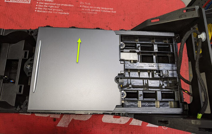 拆下将滑盖固定到中控台的螺钉 (x9)。