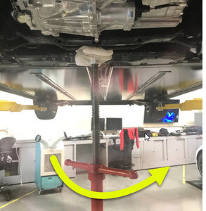 注将举升机升离锁止位,然后固定住释放杆,使锁具在车辆降下时保持活动自如;将车辆设置到适宜的作业高度