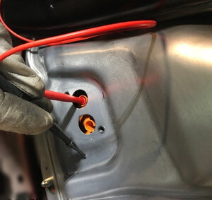 注操作高压组件时,务必佩戴个人防护装备(高压绝缘手套、护目镜),测量 B+ 至接地、B- 至接地、B+ 至 B- 的电压;如果电压大于 10V,则说明电池组触点开关未断开或熔焊;停止作业并联系维修工程部