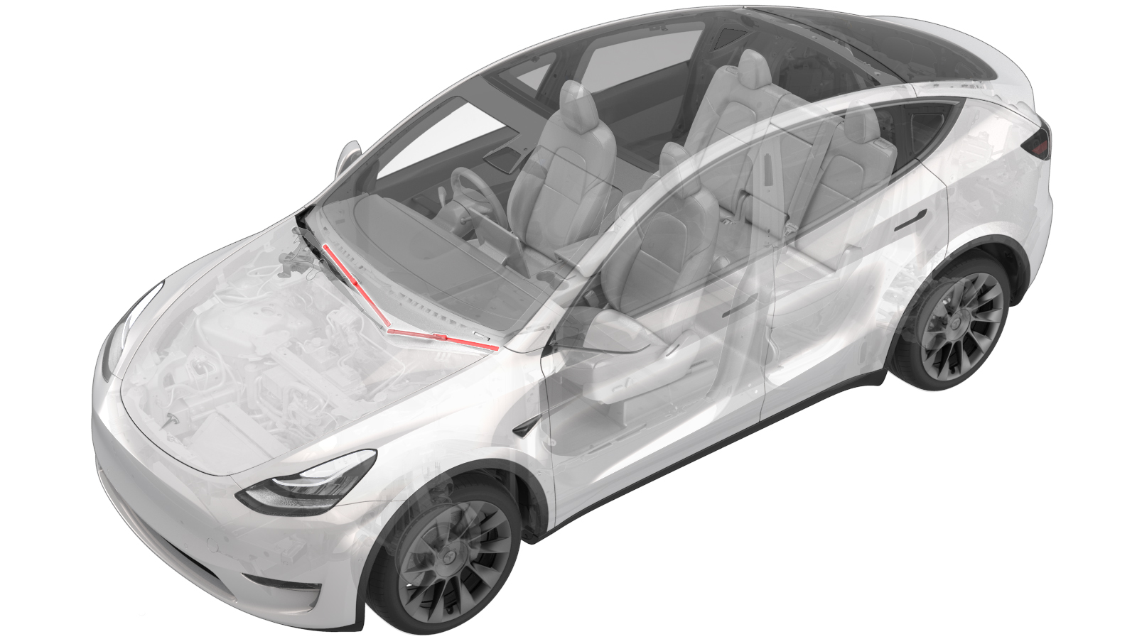 - 将新 RH 雨刮器片安装到 RH 雨刷器臂上,届时可看到剩余的锁片,并听到清脆的锁止声。