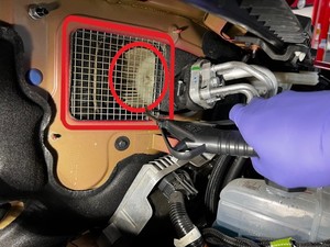 the HVAC module assembly to remove dust particles from the blower motor blades.