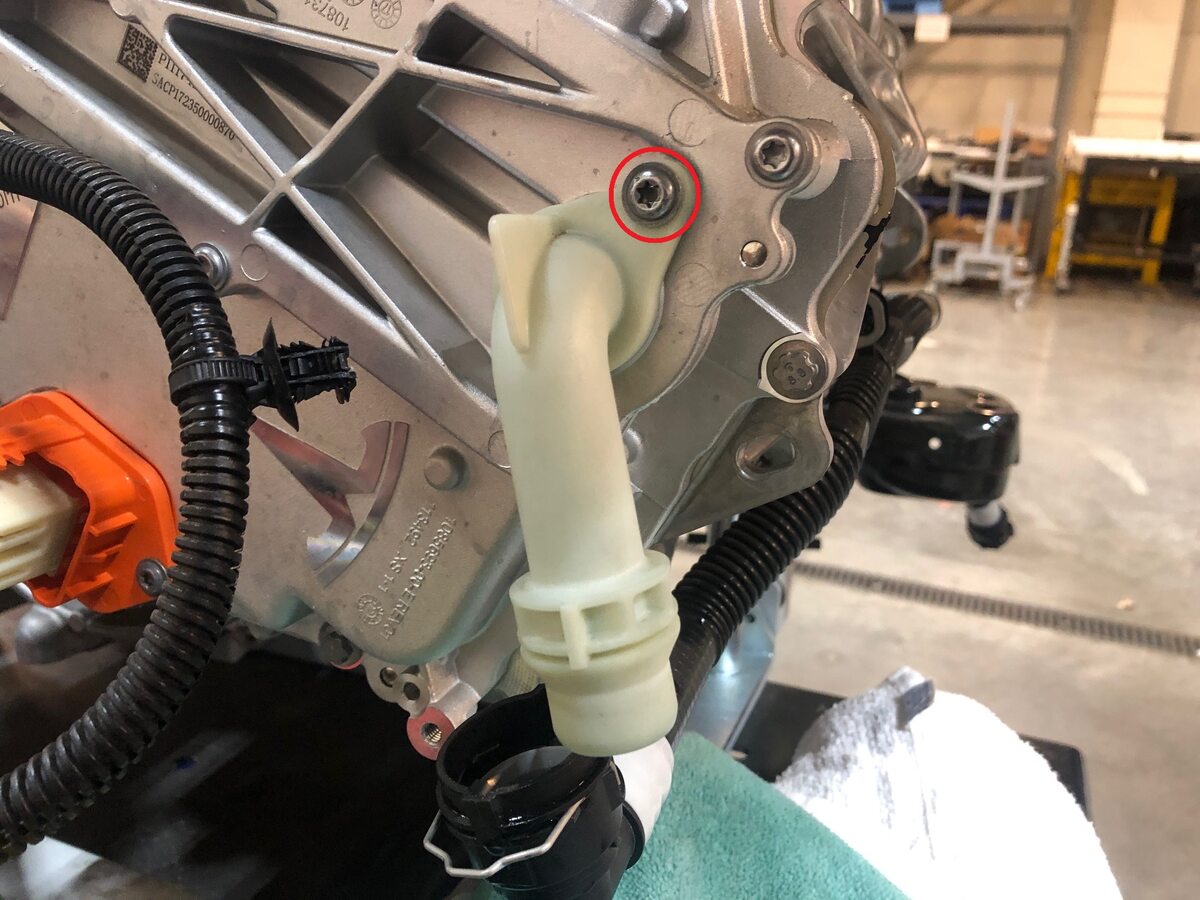 安装将前驱动单元 90 度液力联轴节固定到驱动逆变器的螺钉。