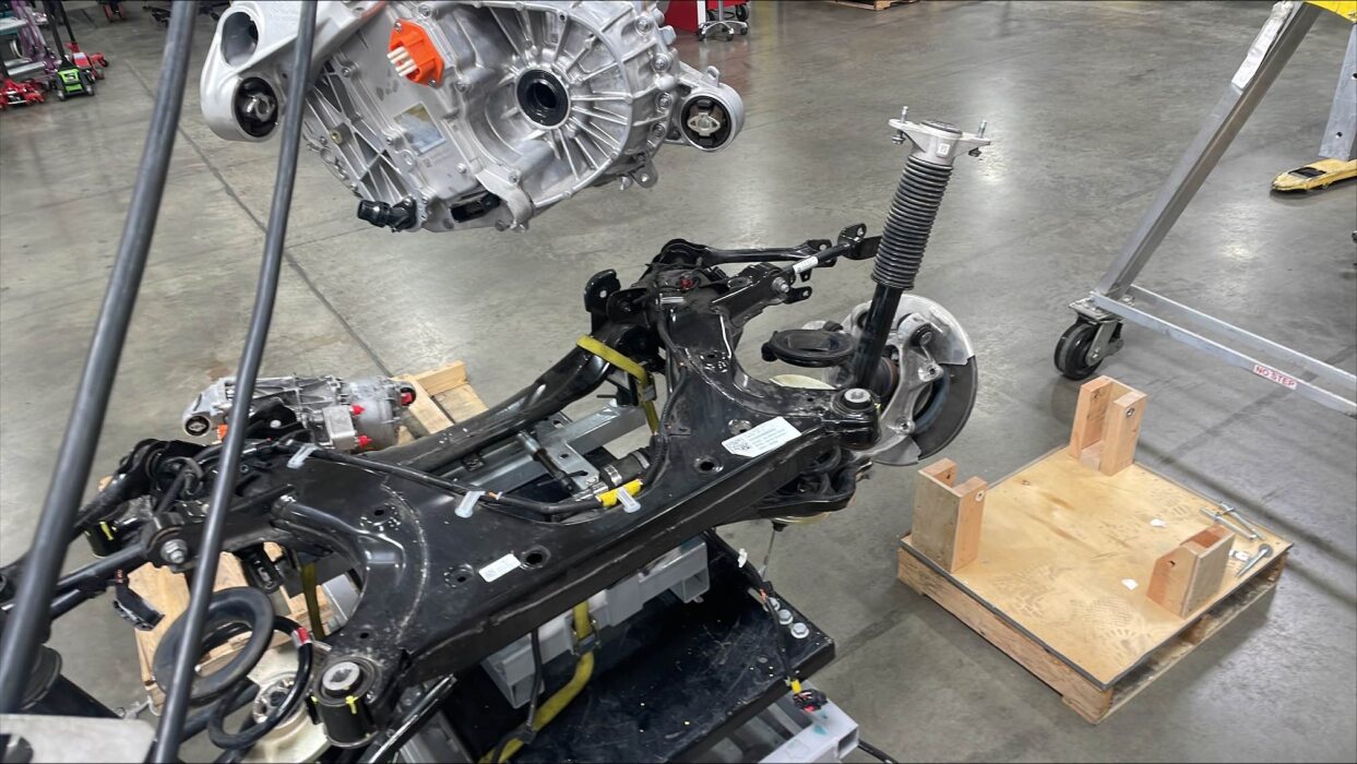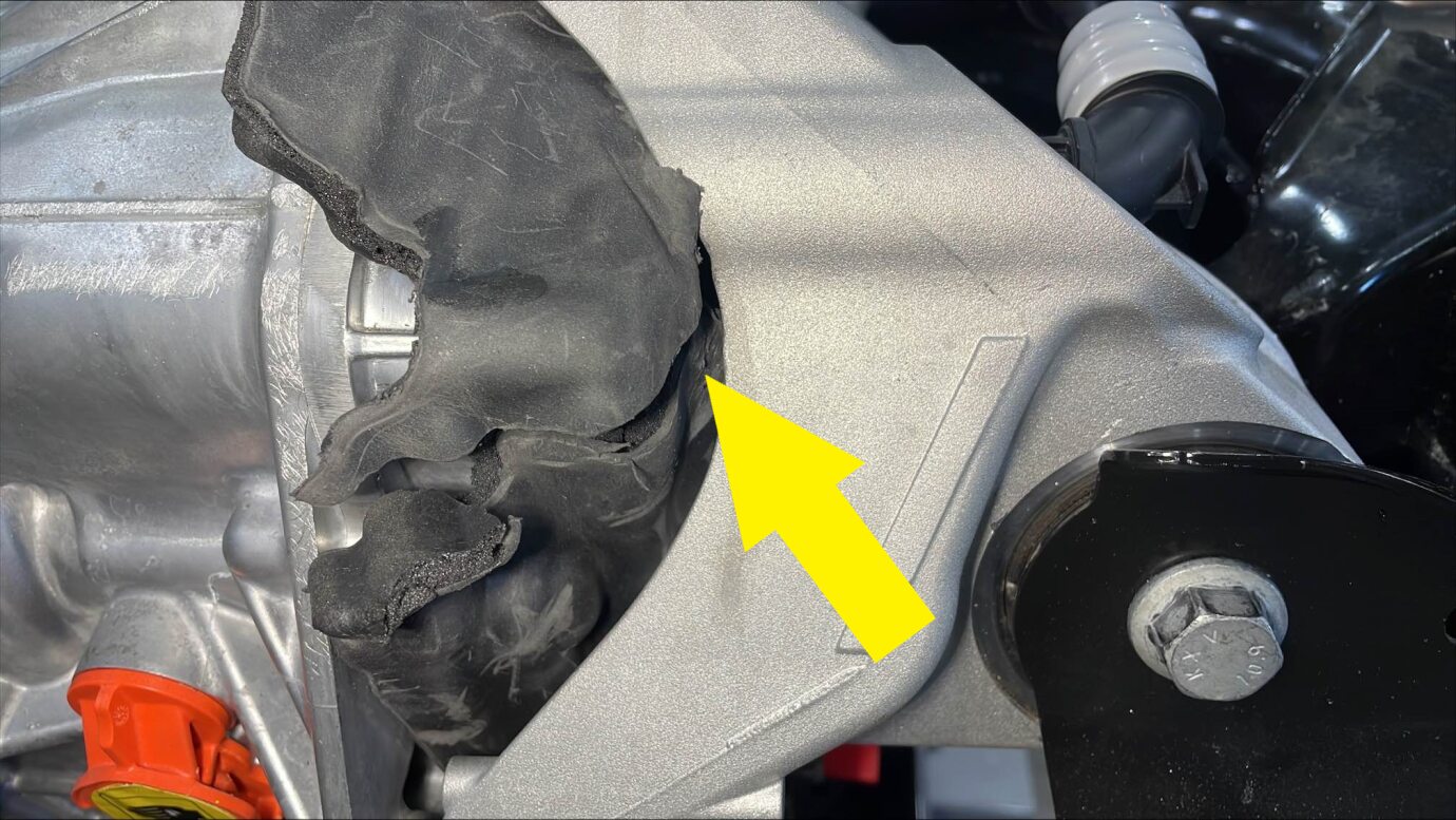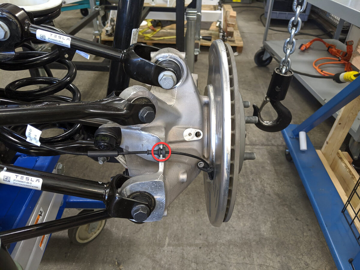 - Release the clip that attaches the rear subframe electrical harness to the rear drive unit inverter.