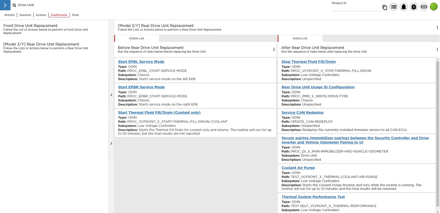 - In Toolbox 3, click the Dashboards tab, and and type ‘Drive Unit' into the search field, and click [Model 3/Y] Rear Drive Unit Replacement.