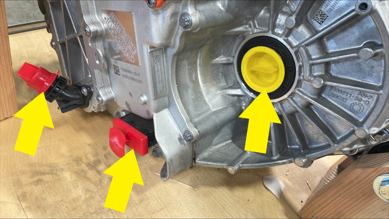 - Remove the plugs from the fittings, immediately connect the rear drive unit inverter inlet hose to the HV battery, fasten the clip, and then perform a Push-Pull-Push check of the fitting.