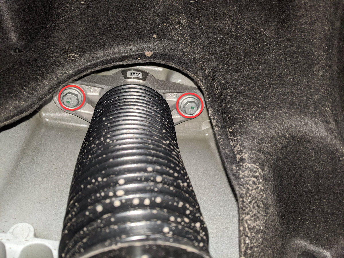 - Remove the bolts (x2) that attach the LH rear strut to the body at the LH top mount.