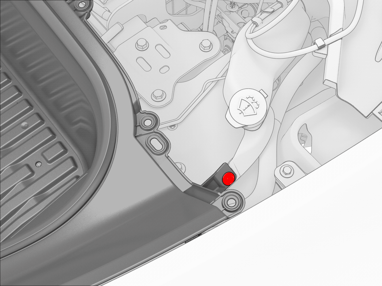 - 松开将前备箱储物单元固定到清洗液储液罐颈部的夹子。