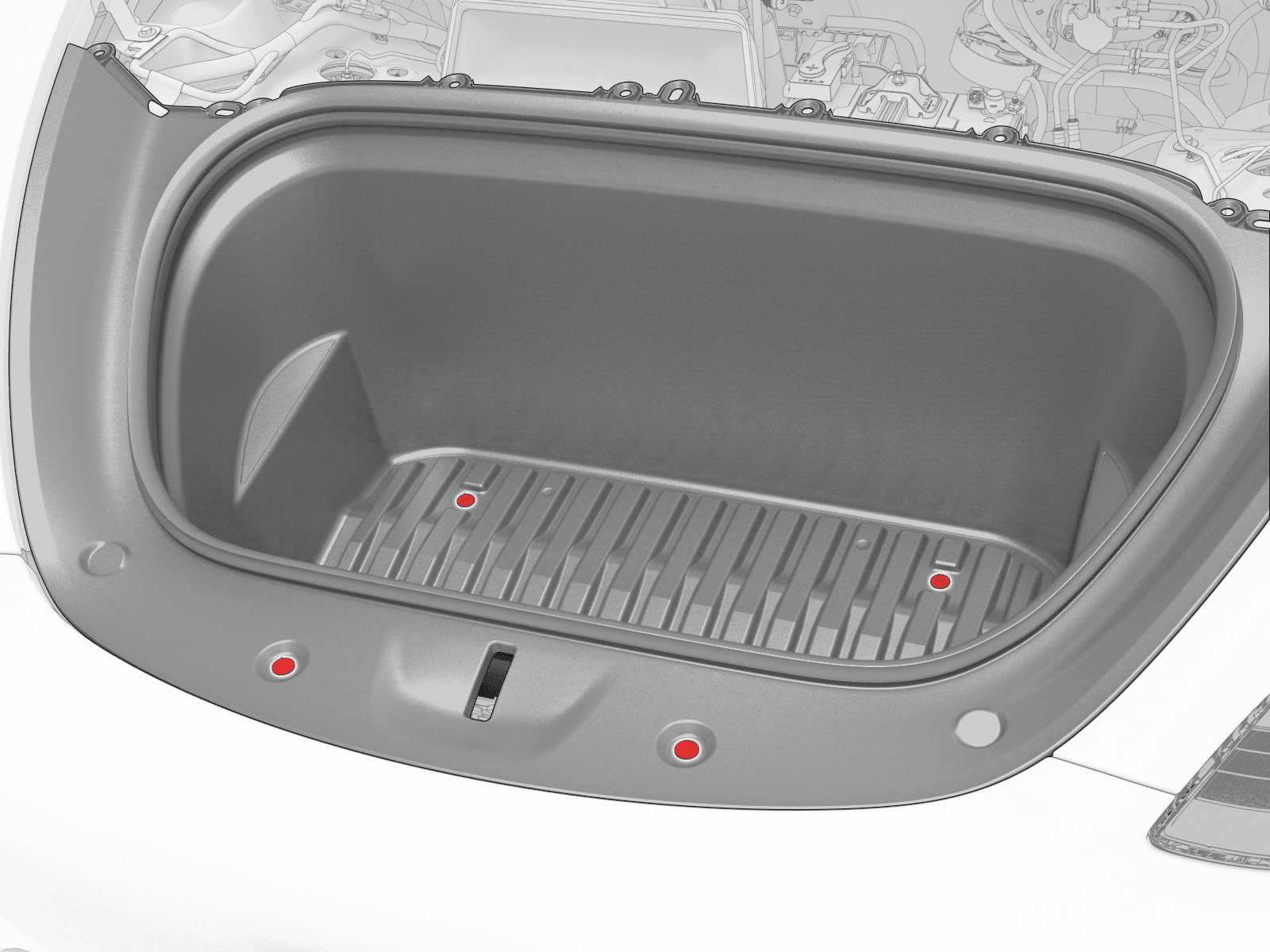 - 如果要安装相同的前备箱储物单元,请跳至第 3 步。如果要安装新的前备箱储物单元,请继续执行下一步。