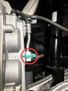 将制动管路插入震动软管支架上的制动软管中,然后使用爪形加长件将制动管路管束螺母安装到制动软管上。