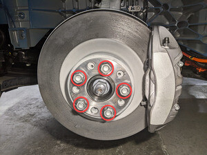 | Bolt that attaches the front rotor to the knuckle |