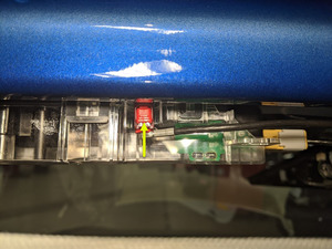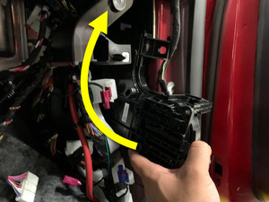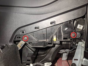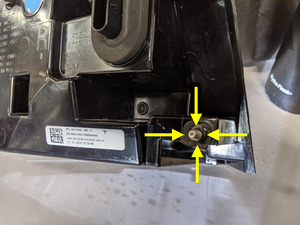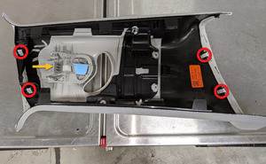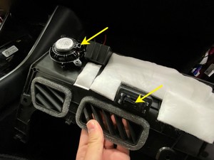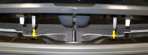 注11 个夹子,2 个导销;使用饰板工具从顶部边缘开始松开上部夹子,然后拉动底部以便松开其余夹子;小心将面板径直拉出控制台,如若面板脱落,可能会损坏