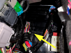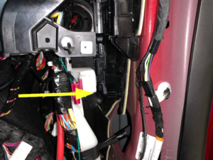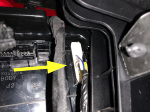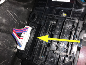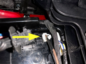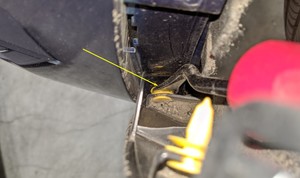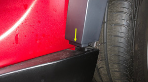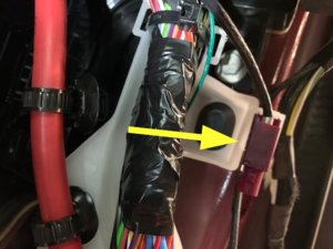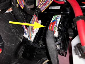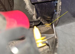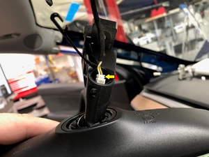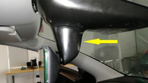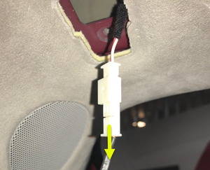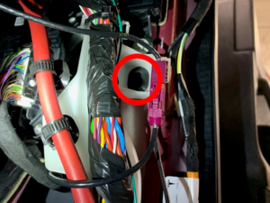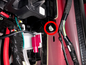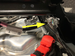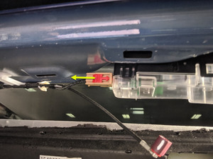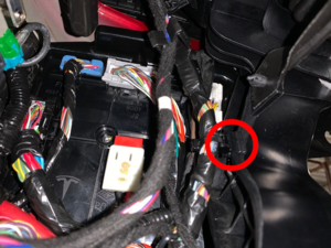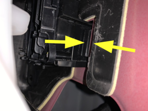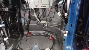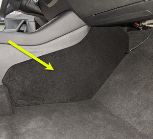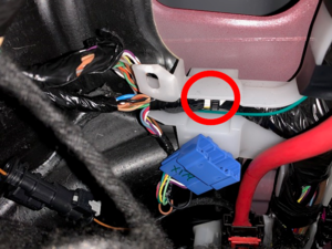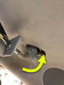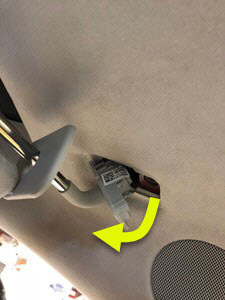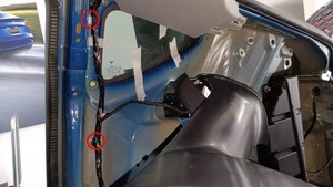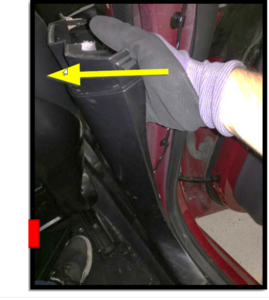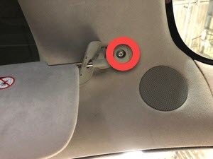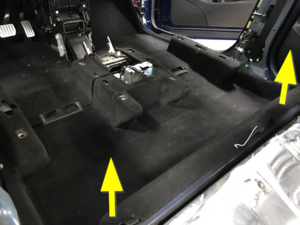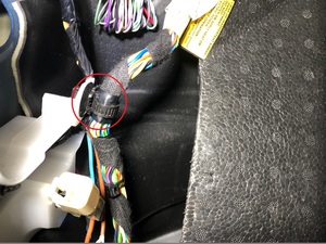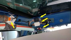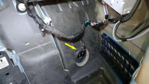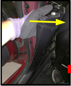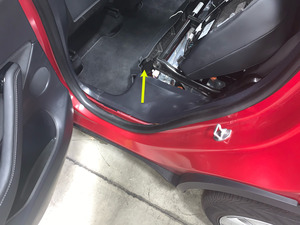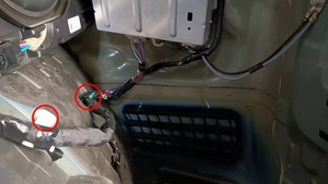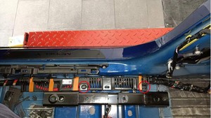 - 将驾驶室 RH 前毡毯拉离 A 柱,以露出 RH 前座椅连接器