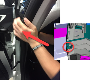 - 沿着 A 柱下部饰板重新放置 LH 前车门密封条