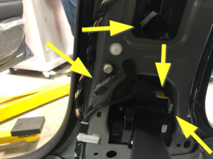 注1 个推拉式夹,5 个夹子;将前夹子支柱引导至 LH C 柱周围