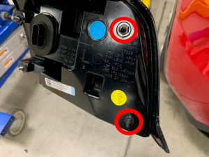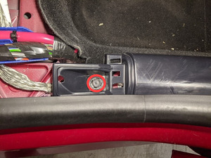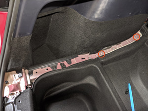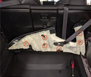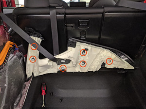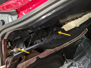 松开夹子,然后拆下 RH 行李箱侧饰板