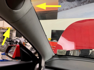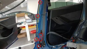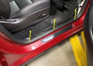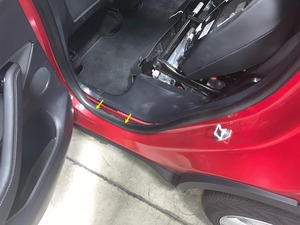 - 沿着 A 柱下部饰板重新放置 RH 前车门密封条