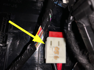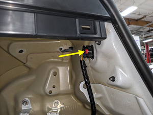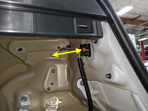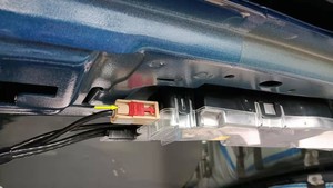 松开 LH 行李箱侧饰板的顶部边缘,然后断开 12V 电源插座和行李箱开关连接器