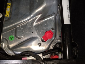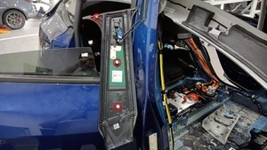 注1 个螺母,10 毫米,6 Nm,1 个连接器;确保车辆处于驻车挡,温度控制系统关闭,断开 12V 电池之前车辆未充电;应先断开负极端子再断开紧急响应回路;等待 2 分钟,使所有电路完全放电