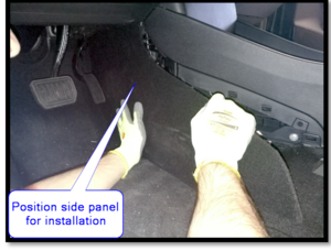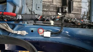 - 将驾驶室 LH 前毡毯拉离 A 柱,以露出 LH 前座椅连接器