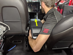 注建议请助手帮忙。向下倾斜控制台前部,将总成滑向车辆前部,将控制台后部倾斜入位