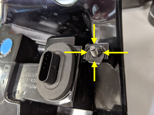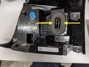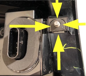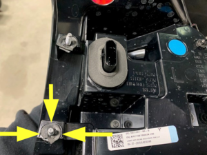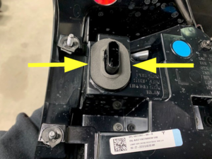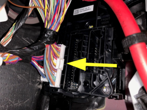 注1 个电气连接器;通过挤压释放锁片松开锁;然后将锁从左侧车辆控制器上移开以将其完全分离;操作连接器时不要用力过大;如果无法轻松地将连接器从车辆控制器上松开,则表示锁可能仍处于接合状态