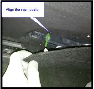 注将后部主毡毯放置到地板上并向前滑动,确保后部主毡毯塞在前部主毡毯和通风槽下方