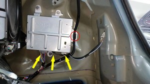 注1 个电气连接器;通过挤压释放锁片松开锁;然后将锁从右侧车辆控制器上移开以将其完全分离;操作连接器时不要用力过大;如果无法轻松地将连接器从车辆控制器上松开,则表示锁可能仍处于接合状态