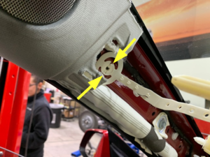 注6 个夹子;将前上方角槽从顶蓬导出并将饰板放在一边