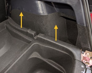 注按需保护座椅靠背内饰;切勿向无座垫的折叠后座椅上放置重物,否则有可能弯折框架上的定位锁片