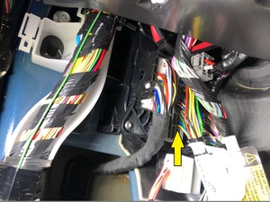 - 从驾驶室 LH 前毡毯下方拉出 LH 前座椅线束