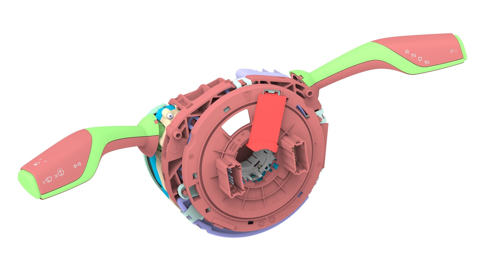 - 提起红色锁片,将其从新转向柱控制模块上拆下。