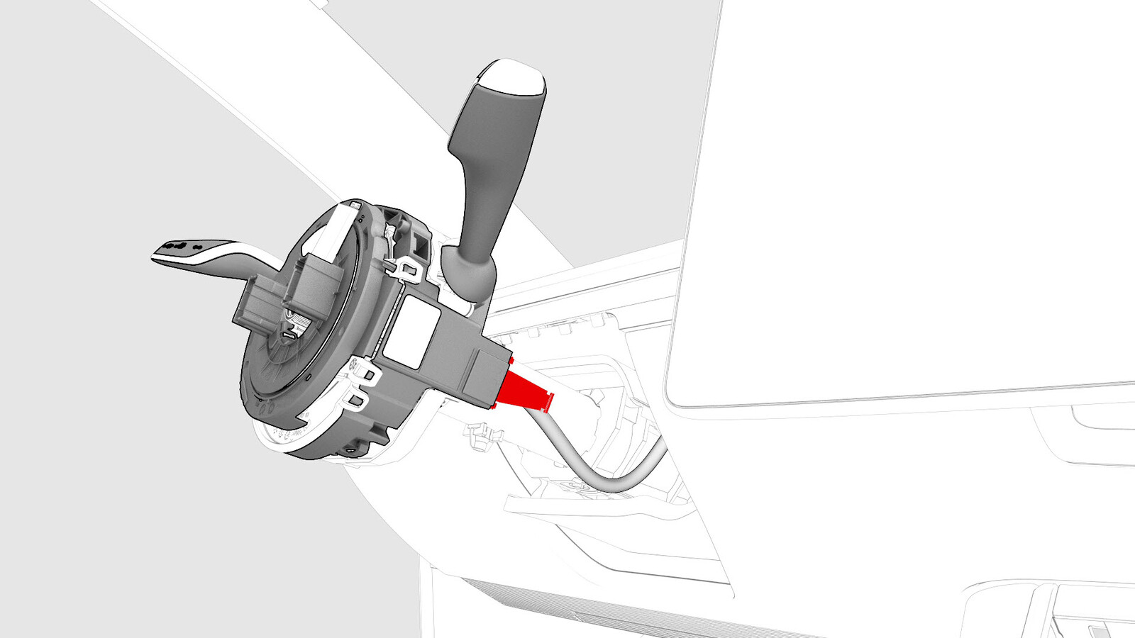 - 执行推拉推测试,确保转向柱控制模块电气连接器稳妥就位。