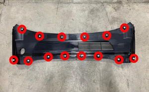 注14x clips, Hold rear wall of frunk to keep from flexing while engaging front clips