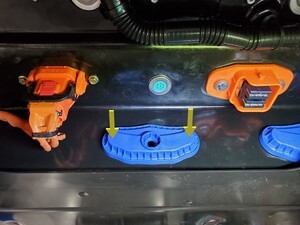 注2x connectors, Lift up and release green locking tab, Pull black connector lock outwards to release connection, Release red lock tab on FRL, Allow 2 minutes for all electrical circuits to fully discharge