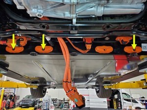注Ensure vehicle is not charging, Note the MYSP lifting points are more narrow than the MY