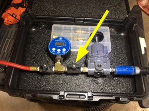 注Subtract the ending pressure from the starting pressure: If the difference is greater than 0.0054 psi, check the hose, adapter, plug fittings, and check the regulator pressure, then retest. If the difference is still greater than 0.0054 psi, escalate a Toolbox session. If the difference is 0.0054 psi or less, continue the procedure.