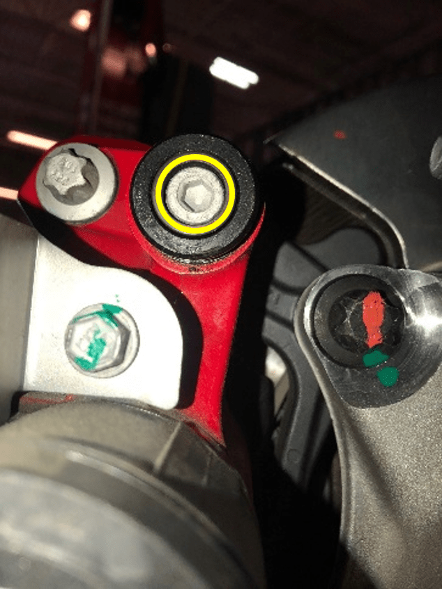 将左后制动钳安装到左后支架上,安装将制动钳固定到支架的下部螺栓,然后用油性记号笔标记螺栓头。