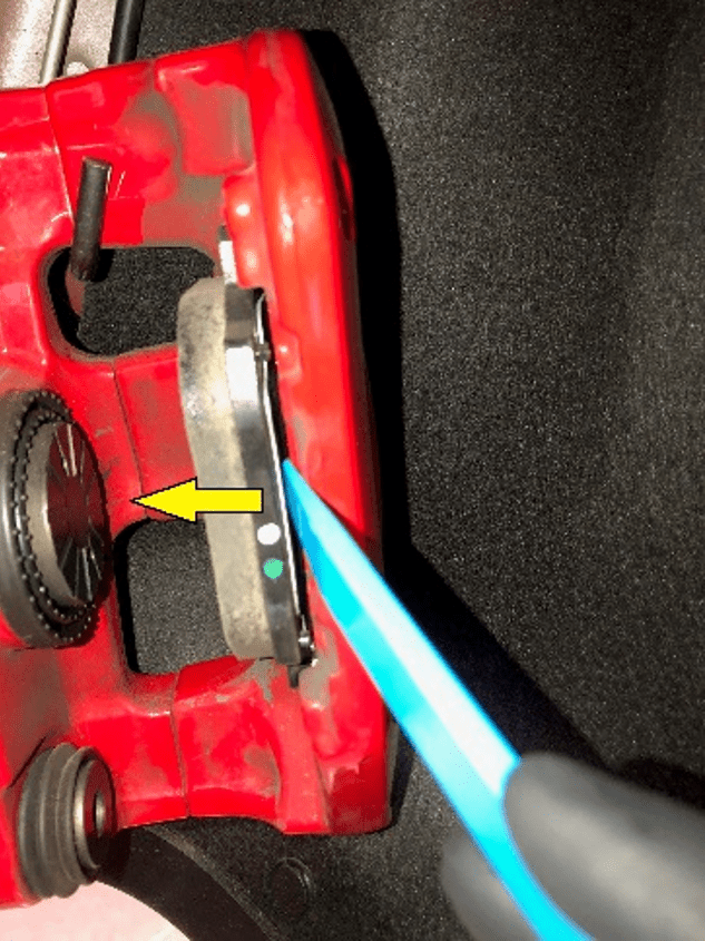 - 将左后制动钳向外移动,以部分压住制动钳活塞。