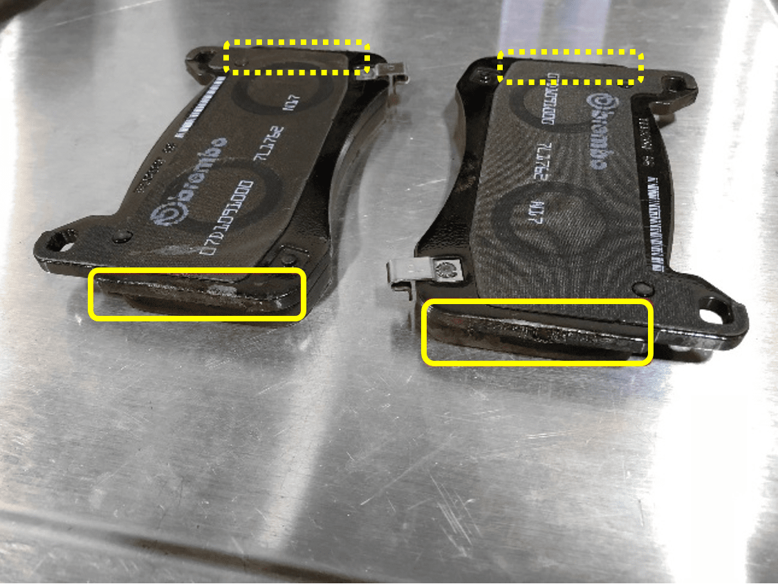 警告请勿混用制动片,因为它们在制动钳中的磨损程度各不相同。