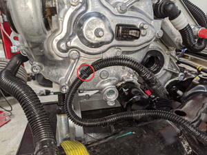 - 将副车架电气线束连接到机油泵连接器,然后将红色锁片按入连接器。
