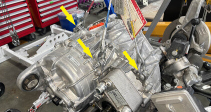 新的前驱动单元到货时预充有变速箱油。在安装过程中清理漏油,并根据需要加满变速箱油。