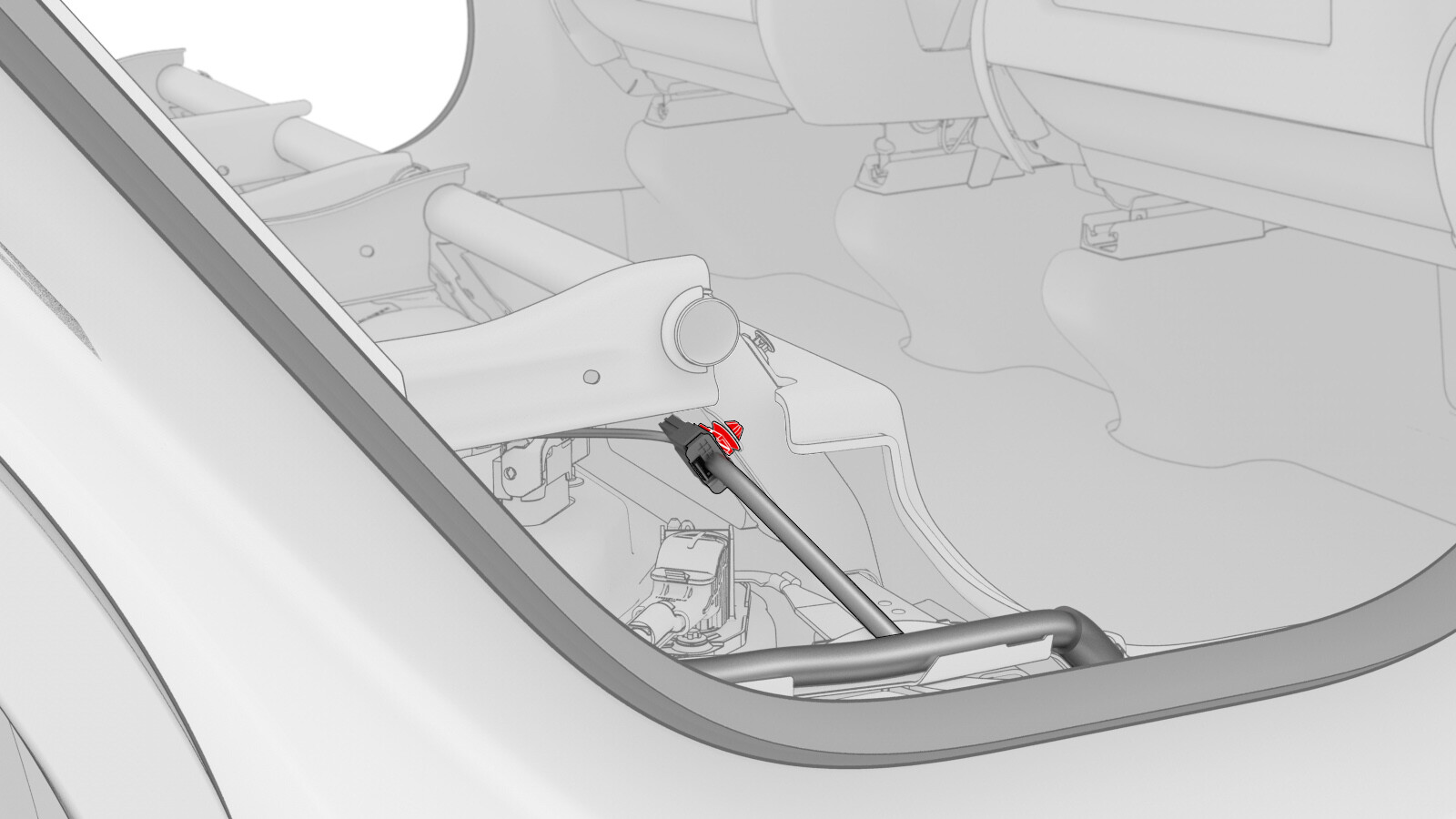 - 将连接器线束夹安装到 RH 第二排座椅骨架上。