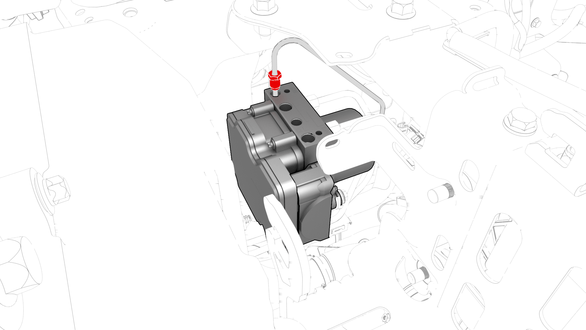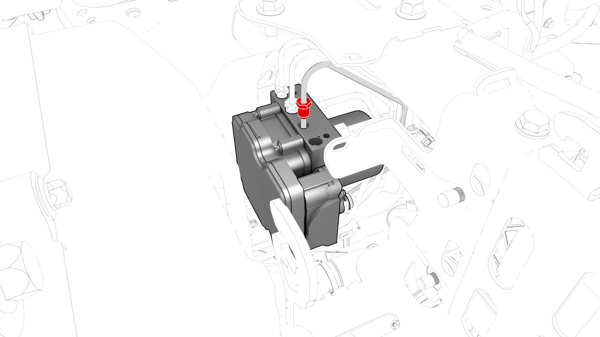 - 将主缸制动管放置入位,然后紧固将管路固定到防抱死制动系统调制器支架的夹子。